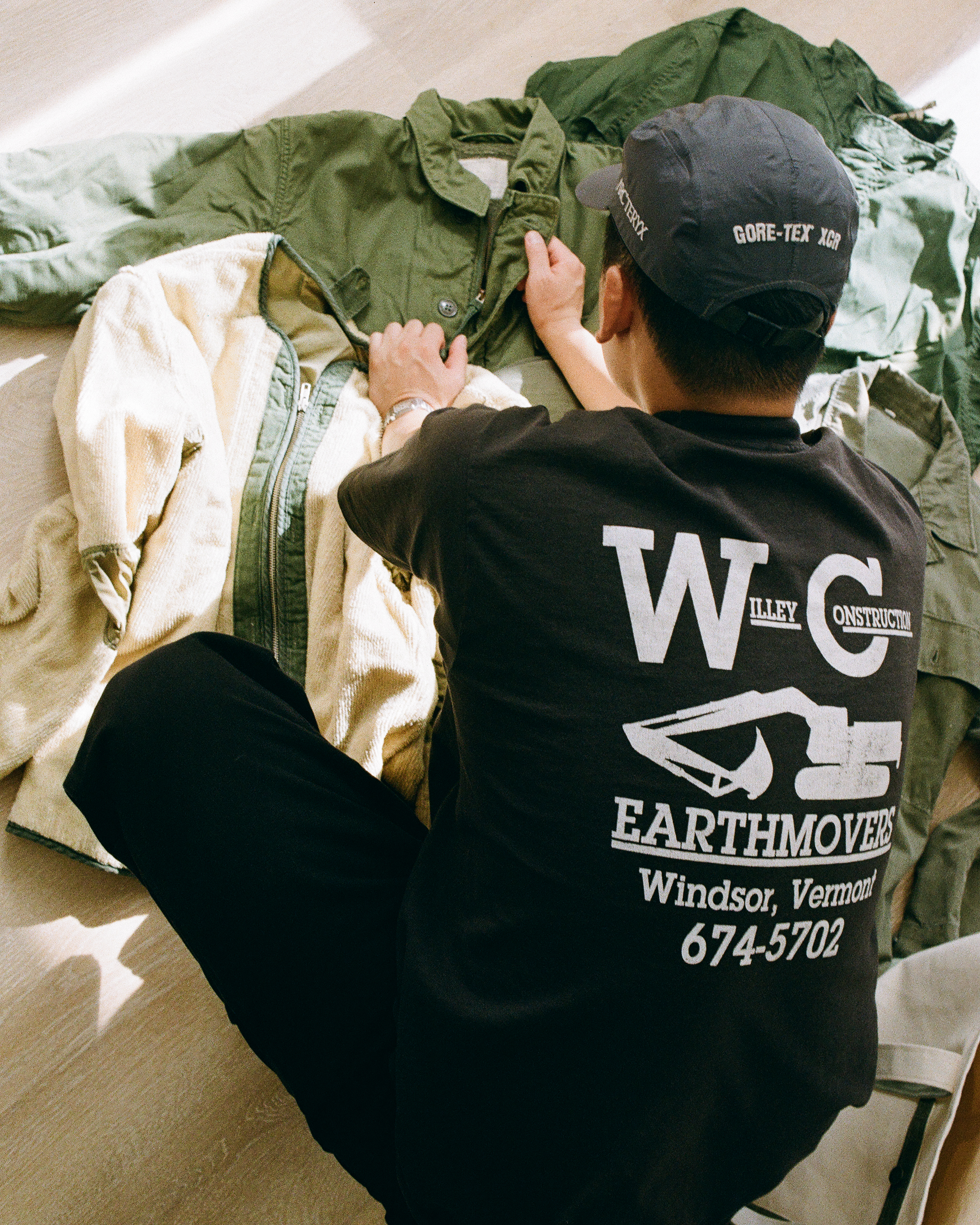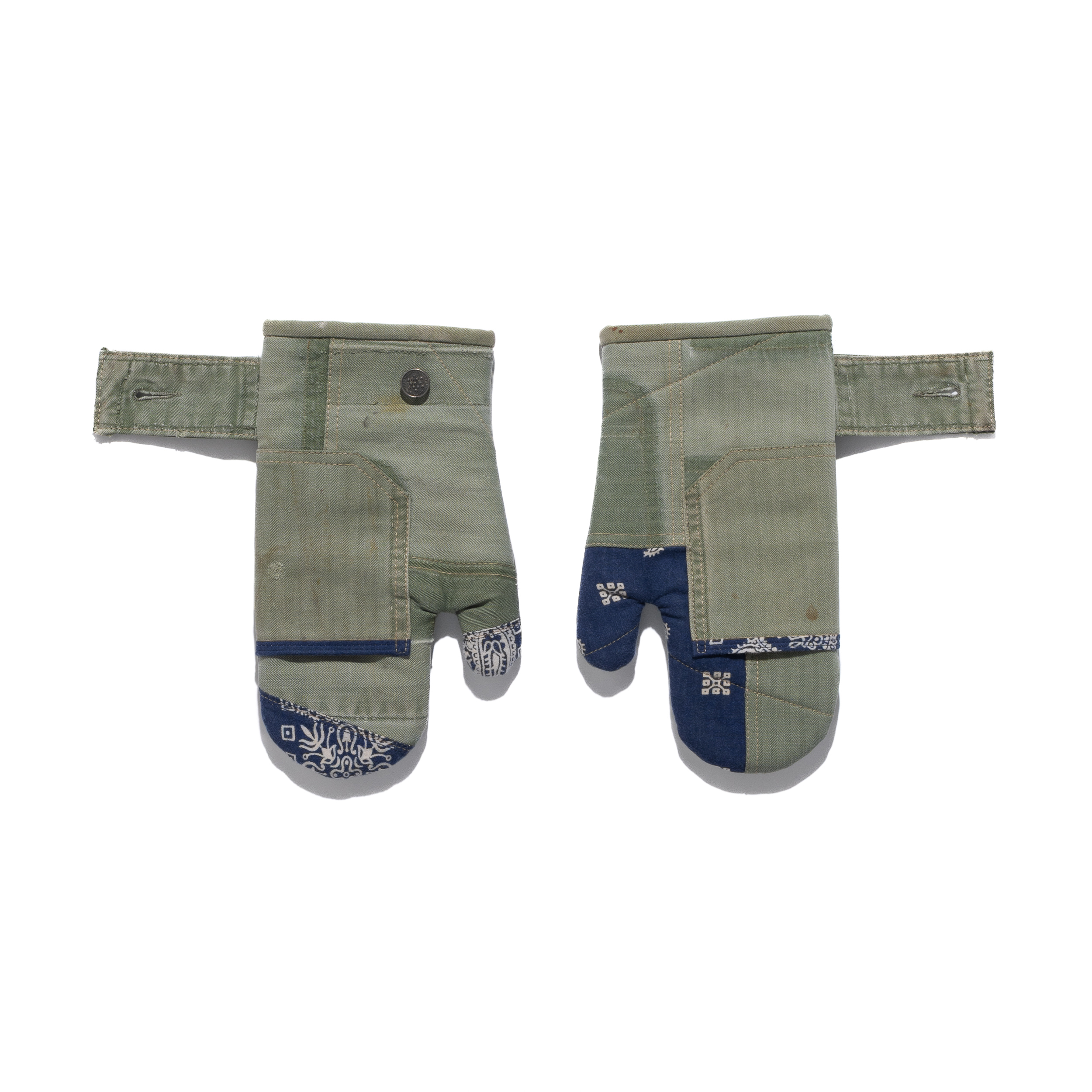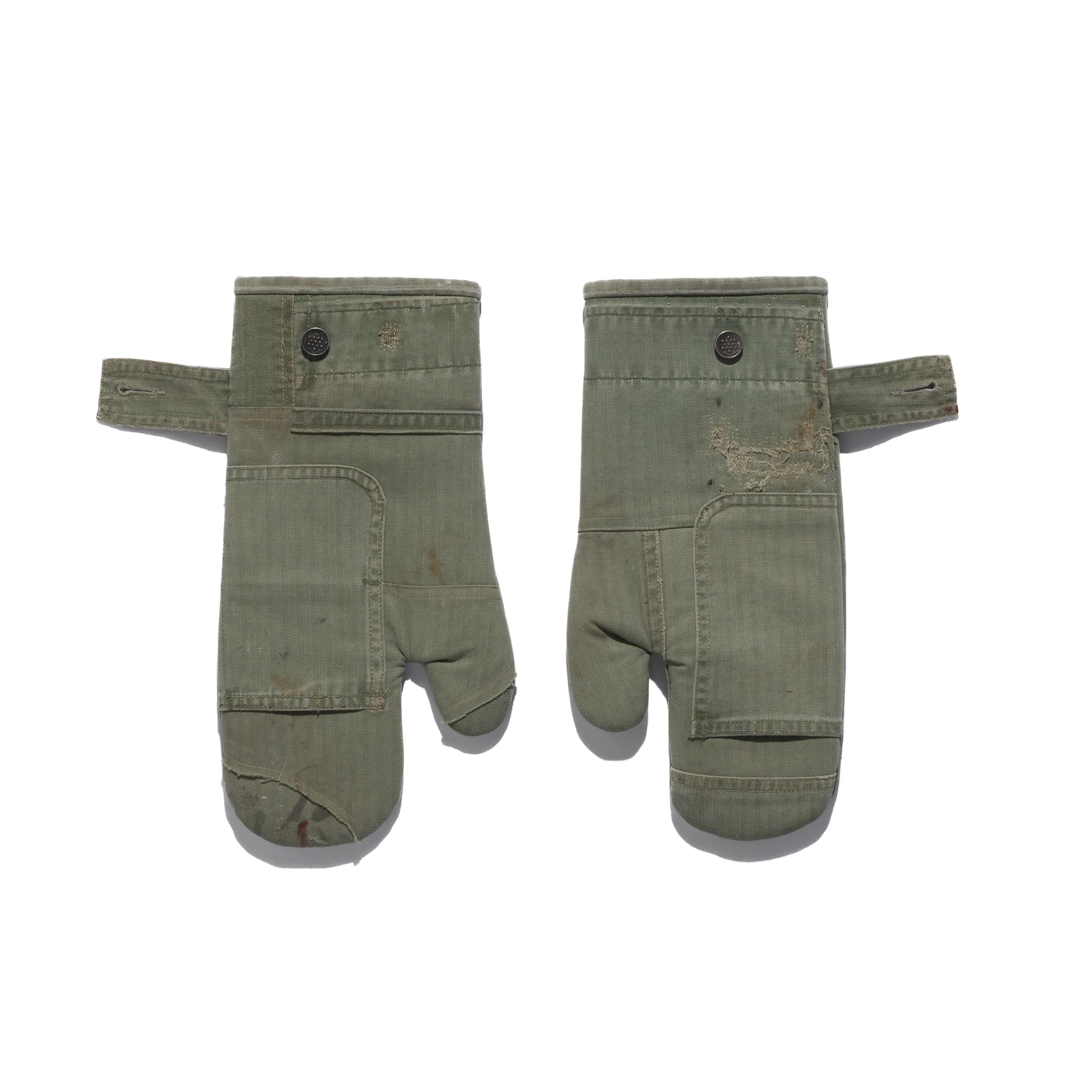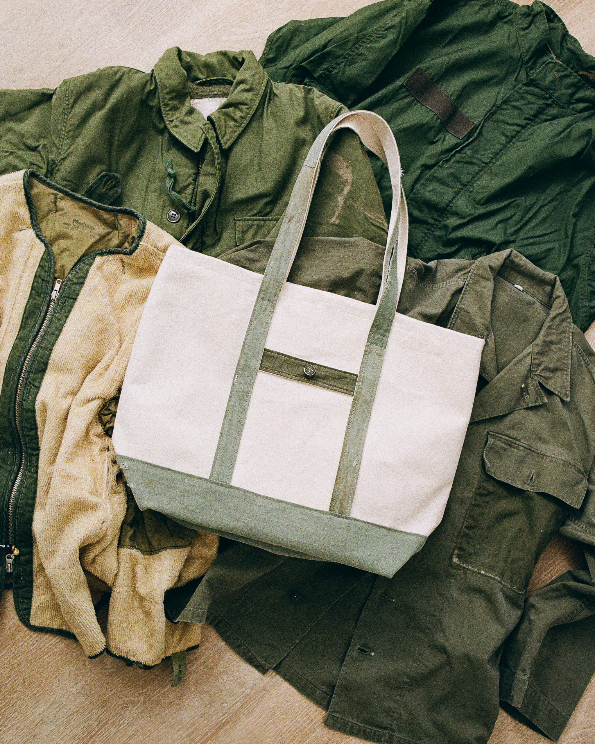 All items were repurposed from vinage military garments, built on a herringbone twill base.